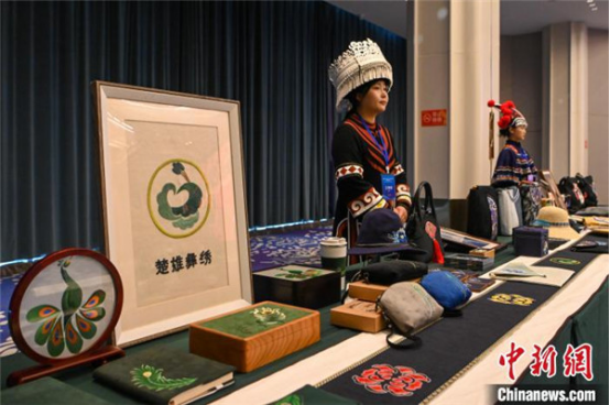 2月13日,會(huì)議現(xiàn)場(chǎng)進(jìn)行楚雄彝繡展示