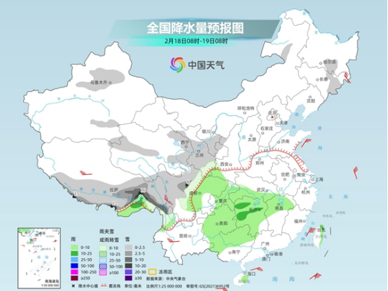 今后三天(2月18日至20日),南方將維持多陰雨的天氣格局,北方今夜起降水也將發(fā)展增多,西北地區(qū)東部至黃淮將自西向東出現(xiàn)雨雪天氣。本周影響我國的冷空氣活躍,全國大部氣溫將在波動中下滑,并陸續(xù)轉(zhuǎn)為較常年同期偏低的狀態(tài)。