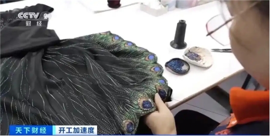 龔清娥是這家服裝生產(chǎn)企業(yè)的釘珠工人,她說今年他們的國(guó)潮服裝訂單增幅最大,而且客戶對(duì)制作工藝的要求越來越高。