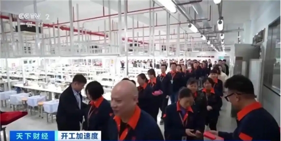 上午8時(shí)多,在廣東惠州的一家服裝生產(chǎn)企業(yè),三百多名工人拿著剛剛收到的開工紅包,高高興興地走進(jìn)廠區(qū)。由于訂單多,春節(jié)之后很多工人都提前返崗了。