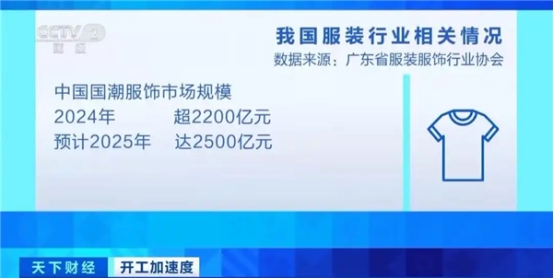 據(jù)了解,2024年,中國(guó)國(guó)潮服飾市場(chǎng)規(guī)模在2200億元以上,預(yù)計(jì)2025年將達(dá)到2500億元。另?yè)?jù)某電商平臺(tái)最新數(shù)據(jù)顯示,2024年以新中式為代表的國(guó)潮服飾相關(guān)銷售額同比增長(zhǎng)153%。進(jìn)入2025年,從1月份至今銷售額同比增長(zhǎng)超200%。