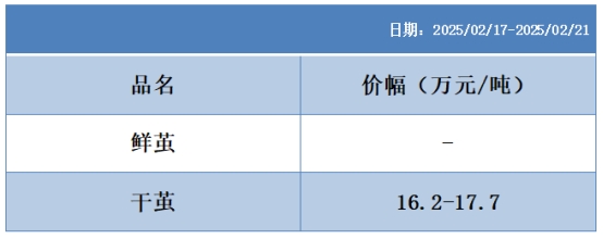根據(jù)本周蠶繭報價按照指數(shù)方案形成的基準(zhǔn)品價格區(qū)間