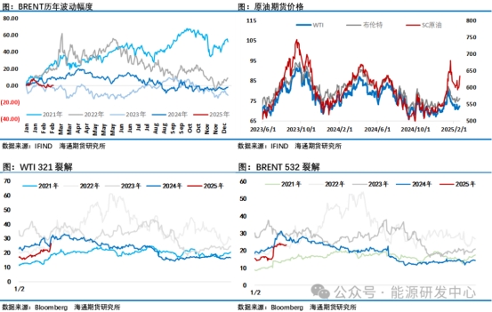 SC在今年以來的大幅波動(dòng)也讓很多投資者直呼看不懂。以特朗普上任的1月20日作為分水嶺,在此之前原油市場走出了一輪半年內(nèi)最大級(jí)別的反彈,先是盤局突破的反彈然后是拜登推出的對(duì)俄制裁二級(jí)點(diǎn)火,這波反彈布倫特漲幅10.5%,而受到制裁沖擊的SC原油漲幅則高達(dá)16.5%,漲幅較布倫特原油多漲了6%,制裁導(dǎo)致運(yùn)費(fèi)上漲,中東原油貼水上行,同時(shí)也讓中國原油供應(yīng)受到明顯擾動(dòng),種種因素推動(dòng)了成本的抬升,這引發(fā)了市場焦慮給予了更高的漲幅。而特朗普上任之后局面又出現(xiàn)了極限反轉(zhuǎn),在特朗普系列措施打壓之下油價(jià)回落明顯,從特朗普上任的1月20日截至2月22日收盤,布倫特原油下跌5.7%,而同期SC4月合約累計(jì)跌幅9.7%,比同期布倫特原油多跌了4%,這種更大的下跌主要出現(xiàn)在美國推進(jìn)解決俄烏沖突的最近2周時(shí)間,顯然對(duì)接觸俄烏制裁的預(yù)期是導(dǎo)致SC跌幅大于外盤的主要因素,這也能看出作為原油進(jìn)口大國,過高的對(duì)外依賴度,導(dǎo)致當(dāng)供應(yīng)端出現(xiàn)擾動(dòng)時(shí),國內(nèi)市場情緒波動(dòng)更大,這就導(dǎo)致資金會(huì)給SC原油更高的波動(dòng)。而隨著解決俄烏沖突的方向逐漸清晰,油市降溫也愈加明顯。