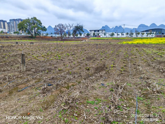 已是2月下旬,我們來看下蠶桑主產(chǎn)區(qū)廣西宜州今天的桑園,有些地塊已經(jīng)發(fā)芽。結(jié)合近期天氣因素綜合來看,今年宜州區(qū)桑樹發(fā)芽情況略遲于去年。