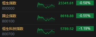 2月24日消息,港股三大指數(shù)調(diào)整收跌,截至收盤,恒生指數(shù)(23341.609, -136.31, -0.58%)跌0.58%,報23341.61點,恒生科技指數(shù)(5789.52, -69.78, -1.19%)跌1.19%,國企指數(shù)跌0.55%。盤面上,科網(wǎng)股漲跌不一,美團漲超2%,快手跌超5%,聯(lián)想集團(12.98, -0.62, -4.56%)跌超4%,騰訊控股(497.2, -19.80, -3.83%)跌超3%;CXO概念股全天走弱,藥明康德(62.9, -7.10, -10.14%)大跌逾10%;內(nèi)房股集體走高,萬科企業(yè)(6.1, 0.21, 3.56%)漲3.57%。