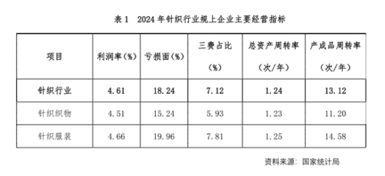 2024年針織行業(yè)企業(yè)利潤總額取得較大幅度的增長,在總資產(chǎn)周轉(zhuǎn)率、產(chǎn)成品周轉(zhuǎn)率與上年同期均基本持平的基礎(chǔ)上,實(shí)現(xiàn)了利潤率同比提高、營業(yè)成本降低、三項(xiàng)費(fèi)用占比下降、虧損面縮小,呈現(xiàn)出運(yùn)營效益持續(xù)改善向好的發(fā)展態(tài)勢。