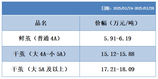 根據(jù)本周蠶繭報(bào)價(jià)按照指數(shù)方案形成的基準(zhǔn)品價(jià)格區(qū)間