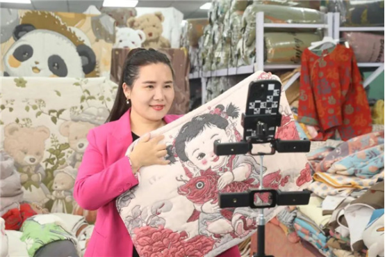 一二三,上鏈接!”在利生紡織公司棉本棉直播間,主播活力四射、激情滿懷。公司董事長劉艷生介紹,電商平臺為企業(yè)拓寬銷售端,單場直播即可成交百萬,通過直播銷售年產(chǎn)值能過億。