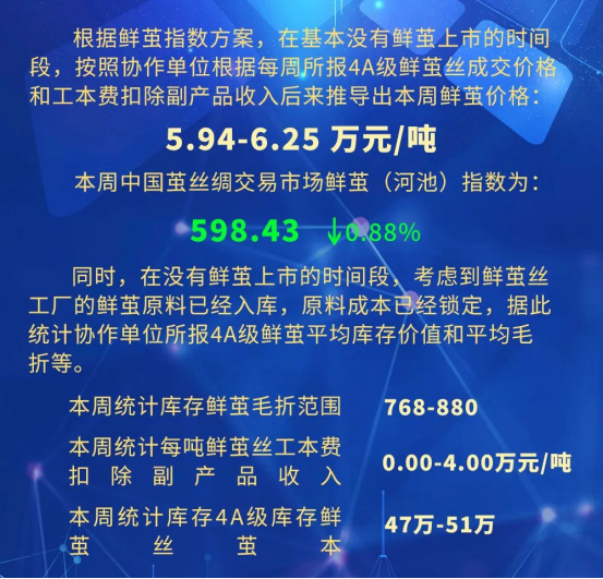 鮮繭價格指數(shù),經(jīng)既定程序倒推計算,本周鮮繭價格指數(shù)出現(xiàn)下調(diào)。