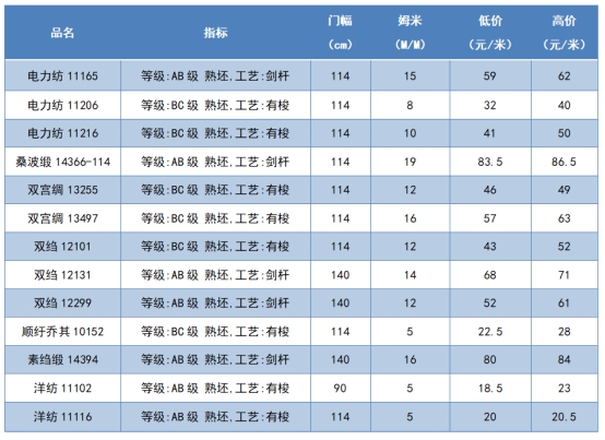 本周綢緞指數(shù)協(xié)作單位成交價格區(qū)間