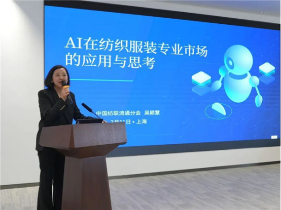 中國紡聯(lián)流通分會會長助理吳穎慧做了關(guān)于“AI在紡織服裝專業(yè)市場的應(yīng)用與思考”的主題分享。吳穎慧從紡織服裝專業(yè)市場應(yīng)用AI的重要性和必要性的角度出發(fā),并緊緊圍繞紡織服裝專業(yè)市場不同的應(yīng)用場景,運(yùn)用大量案例,深入淺出地分析了專業(yè)市場應(yīng)如何利用人工智能提升市場商圈、企業(yè)商戶運(yùn)營服務(wù)效率的方法和路徑。