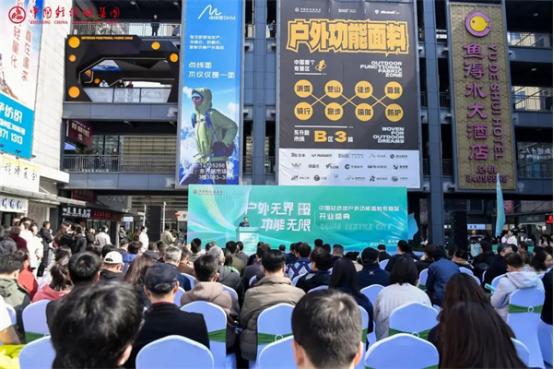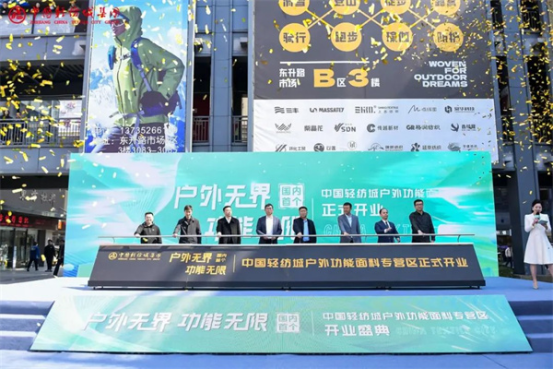 隨著金沙傾瀉的璀璨時(shí)刻,3月18日,中國輕紡城東升路市場迎來里程碑式新起點(diǎn)——中國輕紡城戶外功能面料專營區(qū)正式開業(yè),以“戶外無界,功能無限”為主題,標(biāo)志著戶外功能面料產(chǎn)業(yè)邁向新征程。這是中國輕紡城市場轉(zhuǎn)型升級的又一次探索,也是東升路市場生態(tài)深度布局的又一次突破?,F(xiàn)場,紡織行業(yè)專家領(lǐng)導(dǎo)、品牌服裝企業(yè)代表、功能面料標(biāo)桿企業(yè)代表及紡織領(lǐng)域網(wǎng)紅達(dá)人齊聚一堂,共同見證開業(yè)這一重要時(shí)刻,共商戶外功能面料未來發(fā)展新路徑。