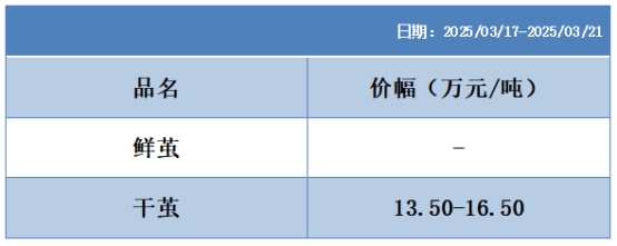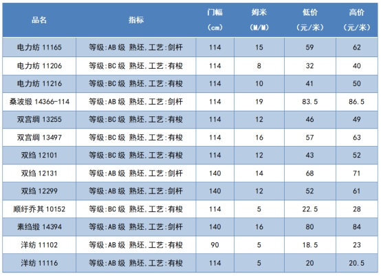 本周高品位生絲協(xié)作單位成交價格區(qū)間