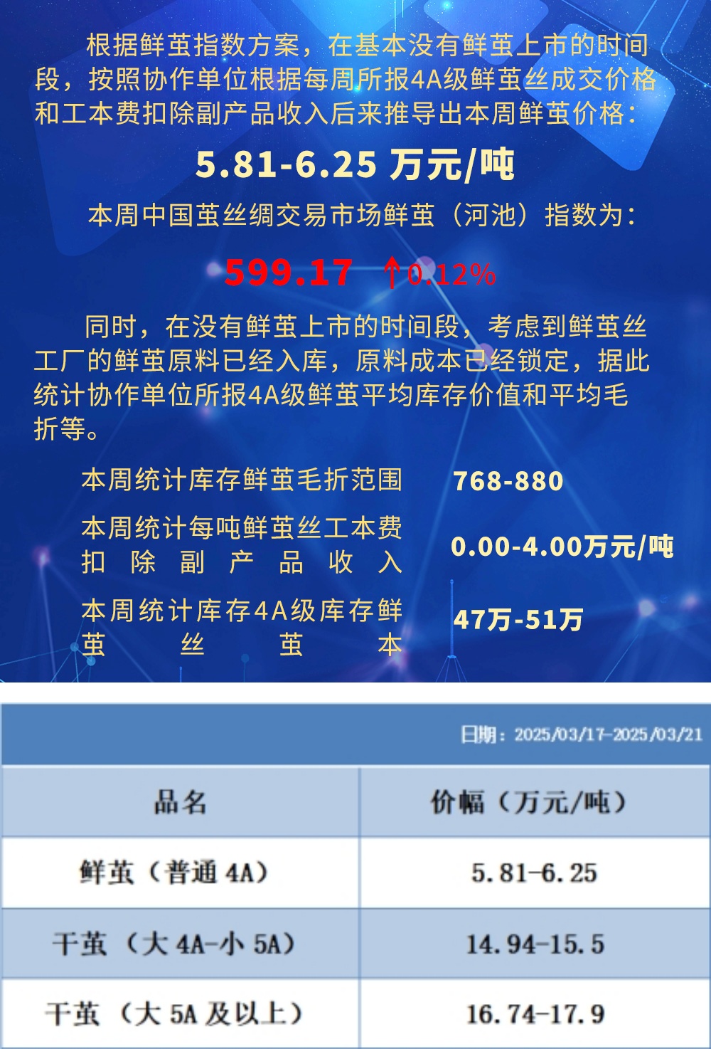 根據本周蠶繭報價按照指數方案形成的基準品價格區(qū)間