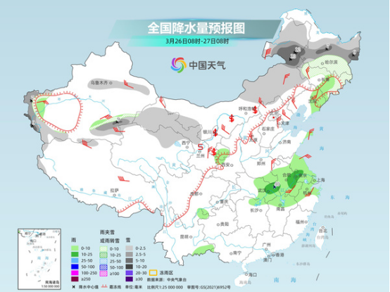 后天,新疆南疆西部山區(qū)、青海東部、甘肅中部、內(nèi)蒙古西中部和東北部、黑龍江東部、吉林東部、河北北部、山西北部等地部分地區(qū)有小到中雪或雨夾雪,其中,新疆南疆西部山區(qū)、青海東部、甘肅中部、內(nèi)蒙古中部等地部分地區(qū)有大雪,局地暴雪。黃淮西部、江淮大部、江漢、江南大部、西南地區(qū)東部、華南大部、臺(tái)灣島等地部分地區(qū)有小雨,其中,重慶北部、江西中部、福建西北部、浙江大部等地部分地區(qū)有中雨,局部地方大雨。