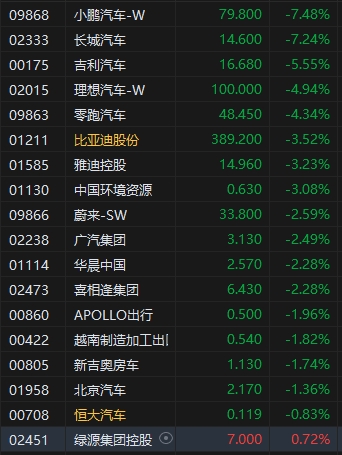 3月25日消息,港股三大指數(shù)集體收跌,截至收盤,恒生指數(shù)(23344.25, -561.31, -2.35%)跌2.35%,報23344.25點,恒生科技指數(shù)(5517.52, -219.31, -3.82%)跌3.82%,國企指數(shù)跌2.65%。盤面上,科網(wǎng)股全線下跌,小米集團跌超6%,嗶哩嗶哩、美團跌超4%,京東集團、阿里巴巴、快手跌超3%,騰訊控股(502, -11.00, -2.14%)跌超2%;汽車股普遍下跌,小鵬汽車跌超7%;航空股沖高回落,中國東方航空股份(2.7, 0.10, 3.85%)漲超3%。
