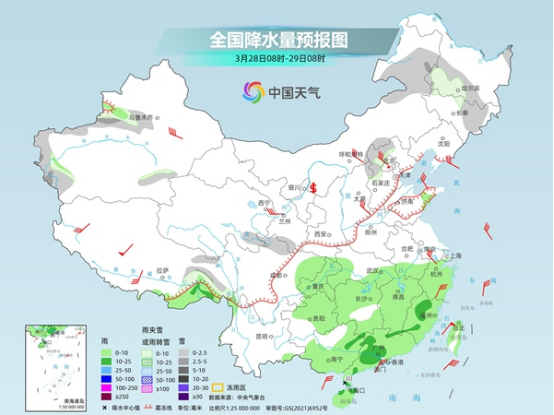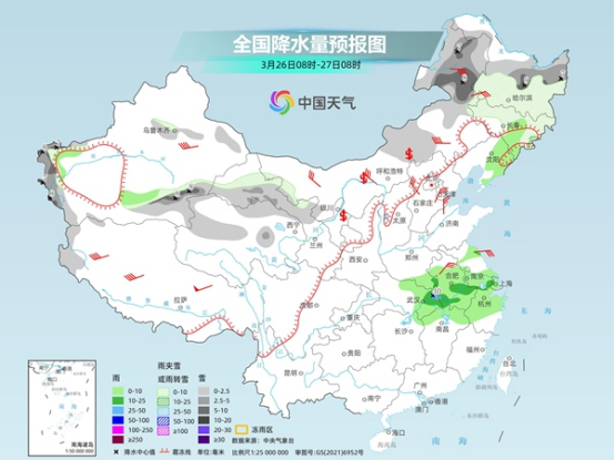 今明天,受冷暖空氣交匯影響,南方降雨發(fā)展增多,部分地區(qū)還可能激發(fā)出強(qiáng)對流天氣。其中今天,新疆南疆盆地東南部和西部山區(qū)、甘肅中北部、青海北部、內(nèi)蒙古東部、東北地區(qū)中北部等地部分地區(qū)有小到中雪或雨夾雪,其中,新疆南疆盆地東南部和西部山區(qū)、內(nèi)蒙古東北部、黑龍江中部等地部分地區(qū)有大雪。新疆南疆盆地西部和東南部、吉林中部、遼寧中東部、河南南部、湖北東部、江西北部、安徽大部、浙江中北部、江蘇南部和西北部等地部分地區(qū)有小到中雨,其中,安徽西南部、湖北東部等地局地有大雨。