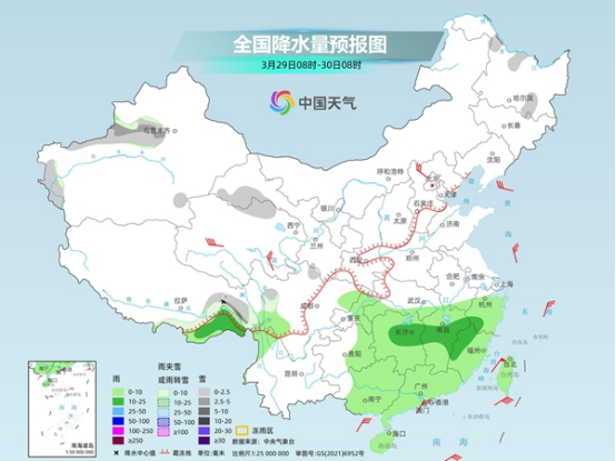 今天起,黃淮、江淮等地也將加入顯著降溫的行列,今明兩天中東部多地將上演從破紀(jì)錄的暖熱到明顯偏冷的轉(zhuǎn)折,之后南方氣溫將在低位徘徊。今晨,中央氣象臺繼續(xù)發(fā)布寒潮藍(lán)色預(yù)警,預(yù)計,今天08時至3月30日08時,新疆南疆盆地、青海東部、甘肅中南部、寧夏大部、陜西西部、華北西部、江淮東部、江南中北部、貴州中東部等地部分地區(qū)降溫幅度可達16℃以上。過程最低氣溫將出現(xiàn)在3月29日夜間至30日凌晨,最低溫度0℃線將位于華北南部至秦嶺一帶。