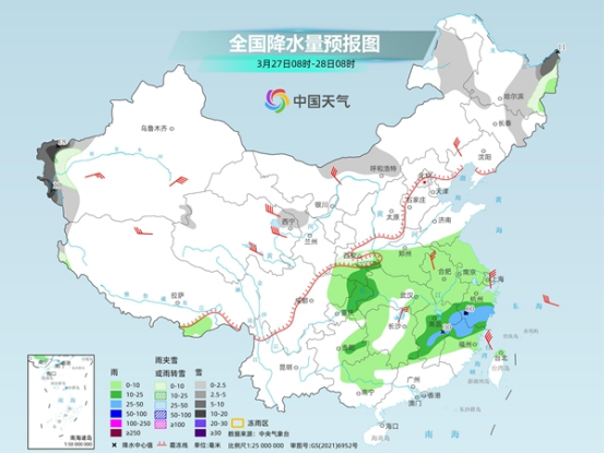 今天(3月27日)至30日,寒潮將繼續(xù)影響我國。今天起,中東部開啟氣溫大跳水,其中南方多地降溫前后冷暖差異巨大,像是杭州、武漢,昨天最高氣溫高達34℃,今天起氣溫就將開始“滑坡“,周末前后或再次感受冬日寒意,公眾需及時增衣保暖。此外,今天至30日南方將持續(xù)有大范圍陰雨,華北、東北部分地區(qū)今明天有降雪,公眾請注意防滑。
