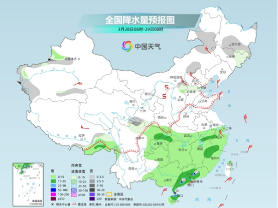 今明兩天(3月28日至29日),寒潮仍會(huì)繼續(xù)影響我國。到本周末,貴州到江南多地最高氣溫僅有個(gè)位數(shù),并且南方多地伴隨降溫還有陰雨,體感溫度會(huì)更低,濕冷感十足,提醒公眾及時(shí)添衣,注意防雨除濕。