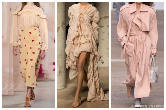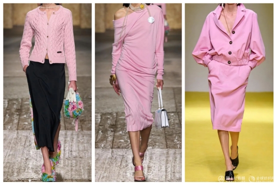 在色彩搭配上,蜜桃軟糖色可以與白色、淺灰色等中性色結(jié)合,營造出清新又不失甜美的組合;與帽貝藍或水玻璃色搭配,則能形成冷暖對比,碰撞出活潑又獨特的時尚“火花”。在材質(zhì)選擇上,蜜桃軟糖色與絲綢、雪紡等輕盈面料結(jié)合,能夠增強服裝的流動感,展現(xiàn)出浪漫與優(yōu)雅;與針織或棉麻材質(zhì)搭配,則能傳遞溫暖與慵懶的氣息,適合人們的日常休閑穿搭。
