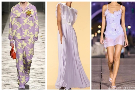 在搭配上,柔紫色可以與白色、淺灰色等中性色結(jié)合,營造出簡約、高級的氛圍。與蜜桃軟糖色或櫻花粉搭配,則能形成柔美與典雅的碰撞,展現(xiàn)出浪漫又不失個性的風(fēng)格。在材質(zhì)選擇上,柔紫色與絲綢、天鵝絨等奢華面料結(jié)合,能夠凸顯其高貴氣質(zhì)。與棉麻、針織等日常面料搭配,能弱化其冷感,使其更貼近生活。此外,柔紫色還常被運用于層疊設(shè)計或不對稱剪裁中,通過流動的線條與柔和的色調(diào),展現(xiàn)出獨特的藝術(shù)美感。
