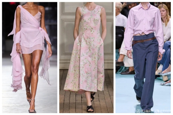 櫻花粉的搭配方式多種多樣,與白色、米色等淺色系搭配,能夠強化其浪漫與純凈的特質(zhì);與桃紅或橘粉搭配,則能形成柔美與熱情的對比,展現(xiàn)出獨特的視覺層次感。在材質(zhì)運用上,櫻花粉通過光澤感面料,如緞面、真絲、皮革等,強化女性氣質(zhì);借助牛仔、棉麻等材質(zhì),則能注入青春活力,適合打造無性別風(fēng)格的日常穿搭。