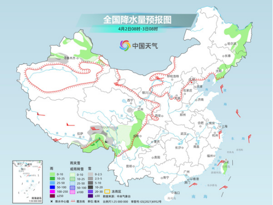 今起三天,我國降水范圍將逐漸縮減,持續(xù)陰雨的江南、華南多地有望放晴,陽光逐漸上線。其中今天,新疆沿天山地區(qū)和伊犁河谷高海拔地區(qū)、青海南部、西藏東部、川西高原、內(nèi)蒙古東部、河北北部、黑龍江中部、吉林中東部等地部分地區(qū)有小雪或雨夾雪,其中,新疆伊犁河谷高海拔地區(qū)、西藏東北部、青海東南部、川西高原北部等地部分地區(qū)有中到大雪,西藏東北部、川西高原北部等地局地有暴雪。新疆北疆北部、西藏東南部、四川盆地西部和中部、重慶南部、貴州西部、云南南部和東北部、內(nèi)蒙古東部、遼寧南部和東部、吉林西部、黑龍江中部和東北部、海南島南部、臺(tái)灣島等地部分地區(qū)有小到中雨。