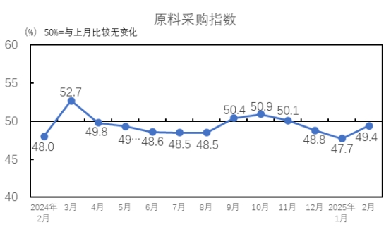 中國經(jīng)濟景氣水平總體回升。國家統(tǒng)計局服務(wù)業(yè)調(diào)查中心和中國物流與采購聯(lián)合會發(fā)布的2025年2月份中國制造業(yè)采購經(jīng)理指數(shù)為50.2%,較上月上升1.1個百分點,重返擴張區(qū)間。隨著春節(jié)后企業(yè)陸續(xù)復(fù)工復(fù)產(chǎn),生產(chǎn)經(jīng)營活動加快,制造業(yè)采購經(jīng)理指數(shù)明顯回升,我國經(jīng)濟景氣水平總體有所回升。