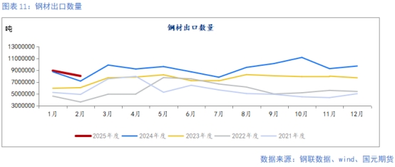 供應(yīng)方面,鋼廠利潤回升,生產(chǎn)偏謹(jǐn)慎,鐵水產(chǎn)量回升。廠內(nèi)庫存及社會(huì)庫存低于去年同期,相對健康。鐵水從建材產(chǎn)量流向板材產(chǎn)量,冷軋與熱軋價(jià)差高于去年同期。統(tǒng)計(jì)局?jǐn)?shù)據(jù)顯示,1-2月粗鋼產(chǎn)量1.66億噸,同比下降0.99%。市場對四月鋼材鐵水產(chǎn)量見頂回落預(yù)期較強(qiáng)。