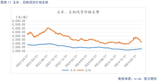截止4月1日,玉米(2388, 9.00, 0.38%)現(xiàn)貨均價(jià)2255.59元/噸,較上周環(huán)比下跌11.47元/噸,豆粕(3111, 18.00, 0.58%)現(xiàn)貨均價(jià)3143.43元/噸,較上周環(huán)比下跌107.43元/噸,近期飼料原料價(jià)格回落。玉米從基本面看,近期國內(nèi)主產(chǎn)區(qū)余糧水平有限,潮糧銷售接近尾聲,部分貿(mào)易主體獲利了結(jié),市場流通量增加,對高價(jià)糧源接受度偏低,采購以剛需補(bǔ)庫為主,玉米現(xiàn)貨價(jià)格震蕩下行。?豆粕從基本面看,隨著進(jìn)口大豆(4521, -21.00, -0.46%)集中到港油廠開機(jī)將明顯提高,豆粕庫存預(yù)期回升,供給將由緊轉(zhuǎn)松。下游飼料企業(yè)處于低庫存狀態(tài),但基本仍維持剛需滾動補(bǔ)庫,國內(nèi)進(jìn)口大豆供給形勢正由緊轉(zhuǎn)松,豆粕現(xiàn)貨大幅下跌。