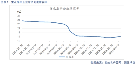 截止4月1日,重點(diǎn)屠宰企業(yè)開工率為27.61%,較上周上升1.06%。冷凍肉庫容率17.14%,較上周環(huán)比上升0.09%。雖有清明備貨短期支撐,但需求處于季節(jié)性淡季,提振力度有限,屠企以銷定宰,開工率回升偏緩。淡季市場,鮮肉價(jià)格偏低,對凍肉需求較小,凍品去庫緩慢。加之白條走貨緩慢,屠企分割入庫情況增多,凍肉庫存節(jié)后開始小幅回升。