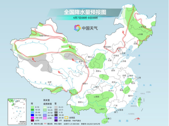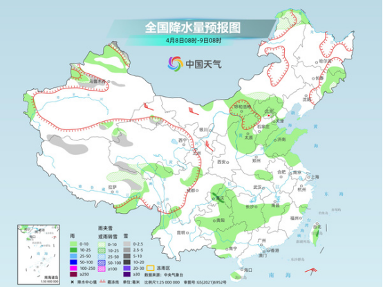 明天,新疆北部、內(nèi)蒙古中東部、西藏北部、青海南部等地有小到中雪或雨夾雪,內(nèi)蒙古中部、陜西北部、山西、河北北部和南部、山東、貴州東部和南部、湖南中南部、江西中部、廣西中北部、海南島、臺(tái)灣島等地有小到中雨。