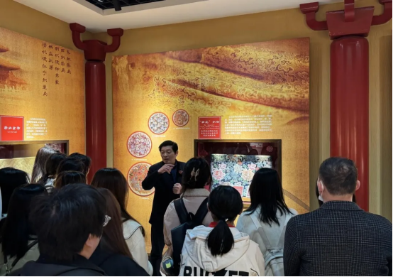近日,江蘇科技大學“蠶絲智慧與農(nóng)桑文化”課程團隊組織師生赴南京開展行走課堂實踐活動,30余名師生走進南京云錦博物館,實地探訪被聯(lián)合國教科文組織列入人類非物質(zhì)文化遺產(chǎn)代表作名錄——南京云錦織造技藝。
