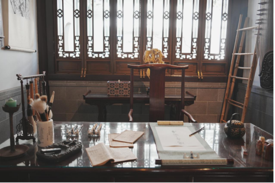 圖:捐贈(zèng)錦盒置于蘭蘇園東北角書房
