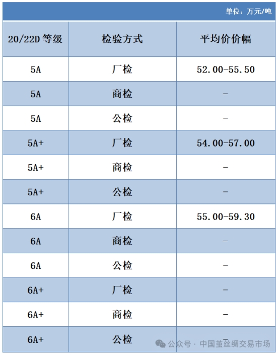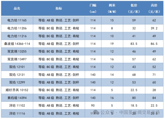 本周高品位生絲協(xié)作單位成交價(jià)格區(qū)間