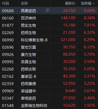 生物醫(yī)藥板塊全線走強(qiáng),再鼎醫(yī)藥漲超9%。廣發(fā)證券(9.64, 0.00, 0.00%)策略研報(bào)稱,港股創(chuàng)新藥風(fēng)口漸近。研報(bào)表示,當(dāng)前資本市場(chǎng)的關(guān)注焦點(diǎn)正悄然從傳統(tǒng)的地產(chǎn)和政策周期轉(zhuǎn)向更具長(zhǎng)期戰(zhàn)略意義的中美科技博弈。我們建議重視港股創(chuàng)新藥的配置價(jià)值,原因在于:中國(guó)創(chuàng)新藥出海的全球競(jìng)爭(zhēng)優(yōu)勢(shì)正在凸顯;當(dāng)前關(guān)稅政策對(duì)創(chuàng)新藥影響遠(yuǎn)小于其他成長(zhǎng)性板塊;政策及監(jiān)管態(tài)度逐步轉(zhuǎn)向?qū)Π鍓K有利的情形。