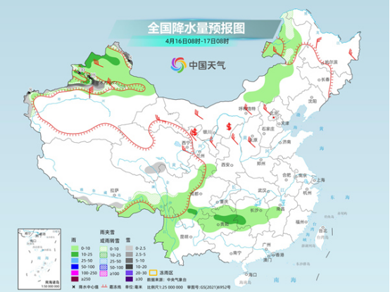 氣象部門提醒,今天,新疆雨雪明顯增多、增強,需注意防范雨雪天氣對交通運輸、農(nóng)牧業(yè)等方面的不利影響。明后天,中東部降水范圍較大,需注意防范局地較強降雨和強對流天氣的不利影響,公眾請關(guān)注臨近預(yù)報、預(yù)警信息,盡量避免在強對流時段外出,雨天出行請留意交通安全。