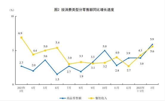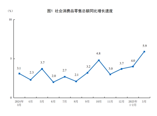 2025年3月份社會消費品零售總額增長5.9%