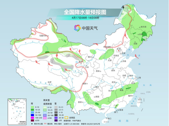 今天(4月17日),我國(guó)大部地區(qū)氣溫偏高,華北、黃淮等地30℃以上的范圍仍然較大。明天,受冷空氣和陰雨影響,華北、黃淮多地降溫可達(dá)10℃左右,公眾請(qǐng)及時(shí)調(diào)整著裝。降水方面,今明天,中東部地區(qū)雨雪逐漸發(fā)展增多,江南等地部分地區(qū)明天將有暴雨,需注意防范。