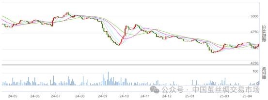 在目前春繭收購態(tài)勢(shì)的帶動(dòng)下,今日生絲盤面各遠(yuǎn)近合約普遍收紅,主力合約漲幅顯著。成交量較昨日量也出現(xiàn)顯著增長,市場(chǎng)活躍度顯著提升。