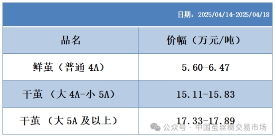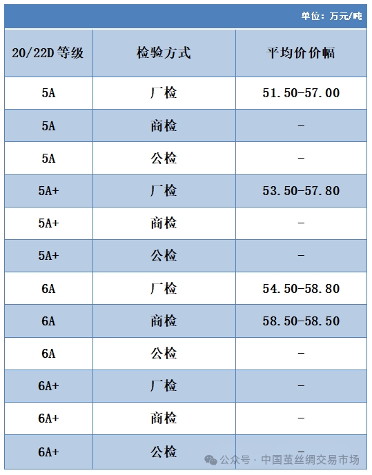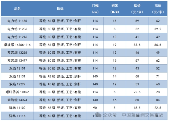本周高品位生絲協(xié)作單位成交價格區(qū)間