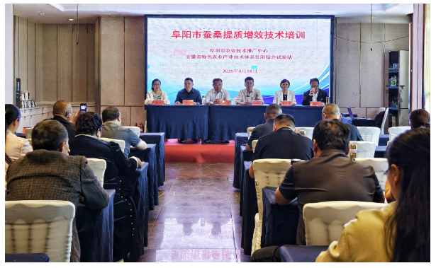 為提升蠶桑經(jīng)營(yíng)主體和養(yǎng)蠶農(nóng)戶素質(zhì)素養(yǎng),2025年4月18日,安徽省阜陽(yáng)市農(nóng)業(yè)技術(shù)推廣中心舉辦蠶桑提質(zhì)增效技術(shù)培訓(xùn),各縣(市、區(qū))農(nóng)業(yè)技術(shù)推廣中心蠶桑負(fù)責(zé)人、蠶桑種養(yǎng)大戶共50余人參訓(xùn)。安徽省阜陽(yáng)市農(nóng)業(yè)技術(shù)推廣中心副主任程偉作動(dòng)員講話,安徽省繭絲綢行業(yè)協(xié)會(huì)副會(huì)長(zhǎng)、安徽京九絲綢股份公司總經(jīng)理周炎出席,安徽省蠶學(xué)會(huì)常務(wù)理事、安徽省特色農(nóng)業(yè)產(chǎn)業(yè)技術(shù)體系阜陽(yáng)綜合試驗(yàn)站站長(zhǎng)、阜陽(yáng)市農(nóng)業(yè)技術(shù)推廣中心蠶??瓶崎L(zhǎng)孟慶杰高級(jí)農(nóng)藝師主持。