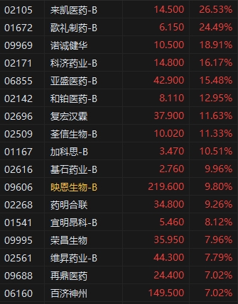 創(chuàng)新藥板塊大漲,來(lái)凱醫(yī)藥漲超26%。多家港股創(chuàng)新藥企近期發(fā)布財(cái)報(bào),成績(jī)亮眼;部分港股上市藥企在研產(chǎn)品取得階段性突破。中泰國(guó)際指出,關(guān)稅對(duì)港股醫(yī)藥行業(yè)的主要企業(yè)影響有限。對(duì)市場(chǎng)重點(diǎn)關(guān)注的創(chuàng)新藥板塊,目前創(chuàng)新藥出海主要是與海外藥企合作研發(fā)的形式,中國(guó)藥企按研發(fā)進(jìn)度收取授權(quán)費(fèi),按目前的規(guī)定授權(quán)費(fèi)無(wú)需繳納關(guān)稅,因此目前看關(guān)稅對(duì)創(chuàng)新藥生產(chǎn)商無(wú)影響。