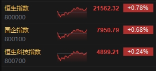 4月22日消息,港股三大指數(shù)午后回暖轉(zhuǎn)漲,截至收盤,恒生指數(shù)(21562.32, 167.18, 0.78%)漲0.78%,報(bào)21562.32點(diǎn),恒生科技指數(shù)(4899.21, 11.84, 0.24%)漲0.24%,國(guó)企指數(shù)漲0.68%。盤面上,科網(wǎng)股漲跌不一,小米集團(tuán)漲超5%,聯(lián)想集團(tuán)(8.23, 0.15, 1.86%)、阿里巴巴漲超1%,京東集團(tuán)跌超6%,美團(tuán)跌超4%,百度集團(tuán)跌近1%;黃金股午后有所回落,赤峰黃金漲超8%;創(chuàng)新藥板塊大漲,來(lái)凱醫(yī)藥漲超26%。
