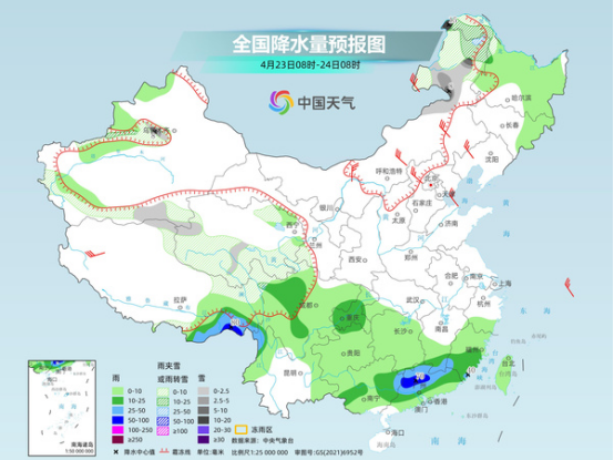 今明兩天(4月23日至24日),隨著冷空氣接連影響我國,長江中下游及其以北地區(qū)會出現(xiàn)大風降溫,各地氣溫多起伏。此外,冷暖氣流交匯下, 南方強降雨頻繁,其中今天白天雨區(qū)將會南壓,雨勢相對減弱;夜間至明天,南方的雨勢又會增強,公眾需注意防范強降雨、強對流天氣。