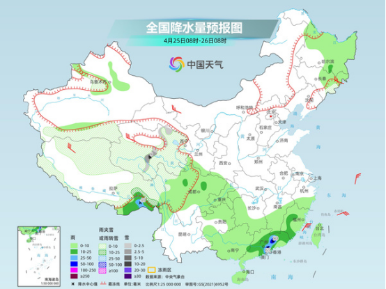明天,內(nèi)蒙古東北部、黑龍江西北部、新疆沿天山地區(qū)和南疆西部山區(qū)、西藏北部、青海中南部、川西高原北部等地部分地區(qū)有小到中雪或雨夾雪,其中,內(nèi)蒙古東北部、黑龍江西北部等地部分地區(qū)有大到暴雪。湖南南部、江西中南部、浙江南部、福建、廣東大部、廣西東部和南部、云南東南部和西北部、西藏東南部等地部分地區(qū)有中到大雨,其中,江西南部、福建中部和西南部、廣東北部等地部分地區(qū)有暴雨或大暴雨。
