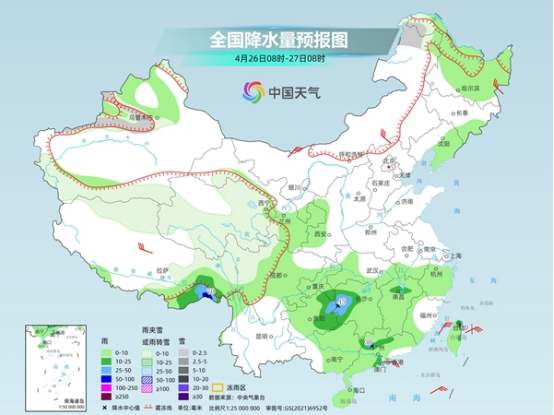 后天,內蒙古東北部、黑龍江西北部、新疆沿天山地區(qū)和南疆山區(qū)、西藏北部、青海、甘肅中部、川西高原北部等地部分地區(qū)有小到中雪或雨夾雪。西藏東南部、湖南中西部、江西北部、貴州東部、廣東西北部等地部分地區(qū)有中到大雨,其中,西藏東南部局地有暴雨。