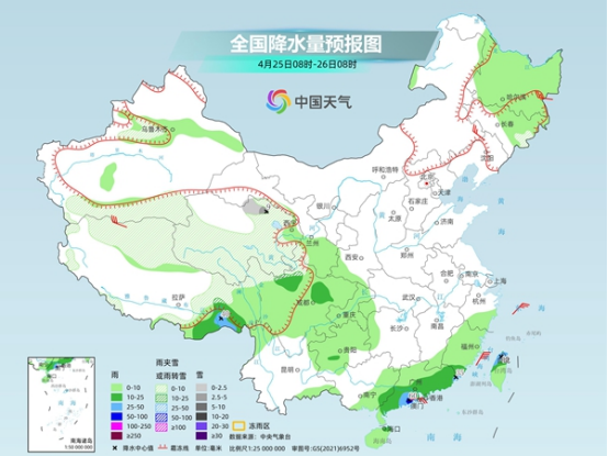 未來幾天,南方還將持續(xù)多雨模式,其中今天強降雨的核心區(qū)域將集中在廣東中北部、福建西南部和中北部等地。中央氣象臺預計,今天內蒙古東北部、黑龍江西北部、新疆沿天山地區(qū)、西藏北部、青海南部等地部分地區(qū)有小到中雪或雨夾雪,其中,內蒙古東北部、黑龍江西北部等地部分地區(qū)有大到暴雪。廣東中北部、福建西南部和中北部、江西南部、浙江南部、西藏東南部等地部分地區(qū)有大到暴雨,福建中北部局地有大暴雨。