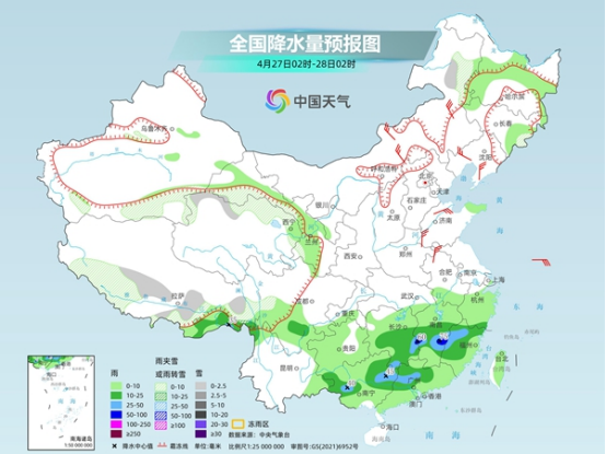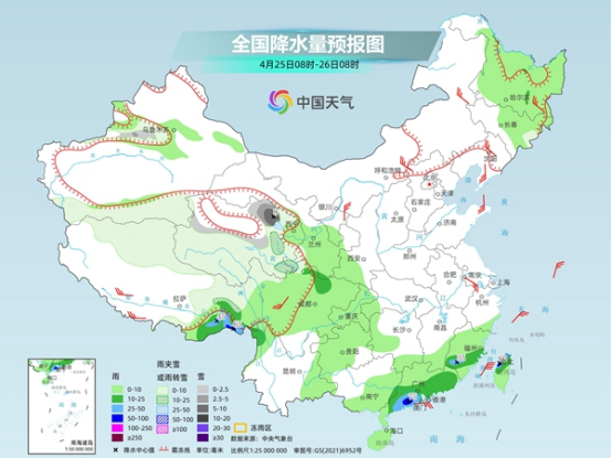 中央氣象臺(tái)預(yù)計(jì),今天,新疆沿天山地區(qū)和南疆南部、西藏北部和東部、青海大部、甘肅南部、川西高原北部等地部分地區(qū)有小到中雪或雨夾雪,局地有大雪。西藏東南部、四川盆地西北部、云南西北部、福建中南部、廣東南部、臺(tái)灣島北部等地部分地區(qū)有中到大雨,其中,西藏東南部、廣東西南部、臺(tái)灣島西北部等地部分地區(qū)有暴雨。